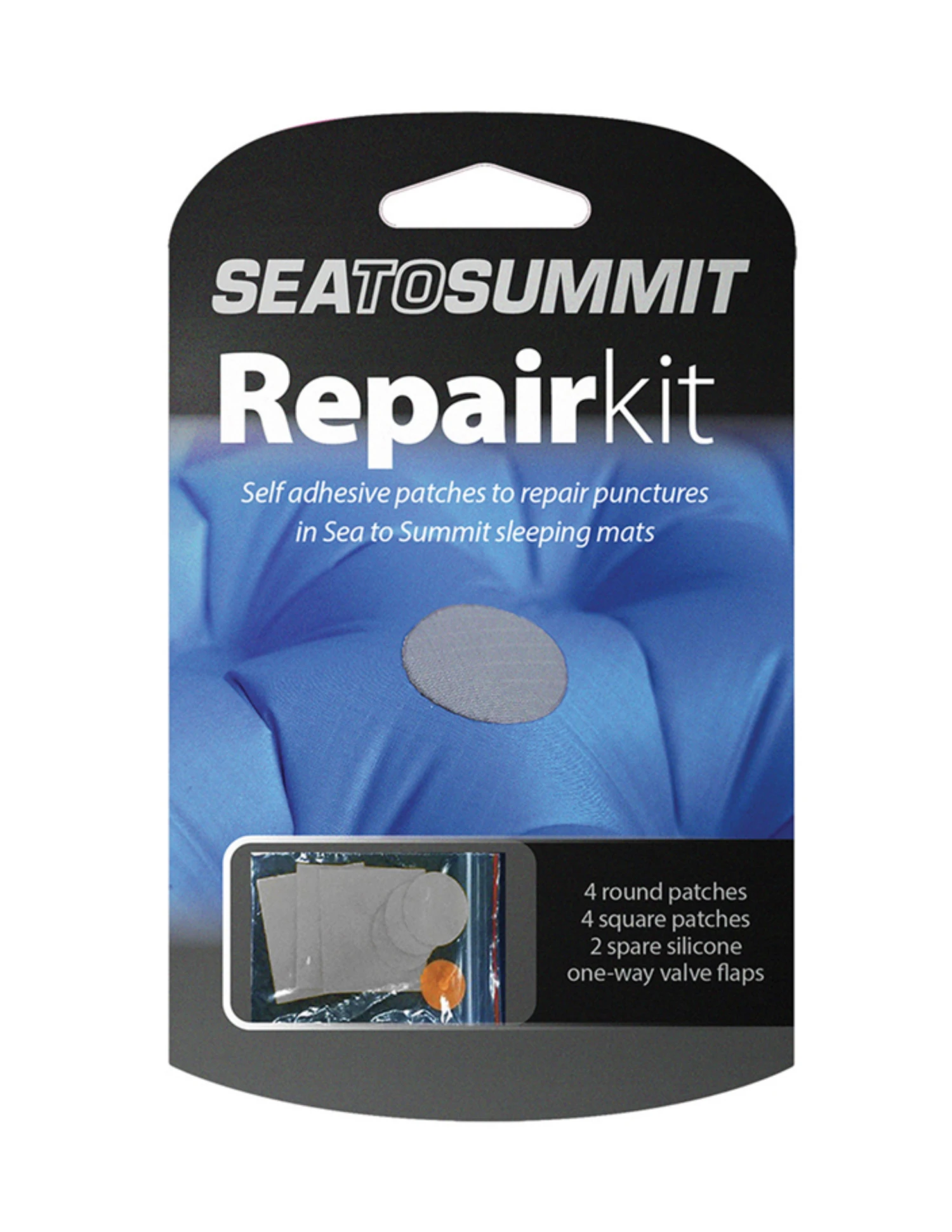 Le kit comprend : 4 patches de 3 cm de diamètre, 4 carrés de 4 cm, 2 clapets anti-retour de remplacement.