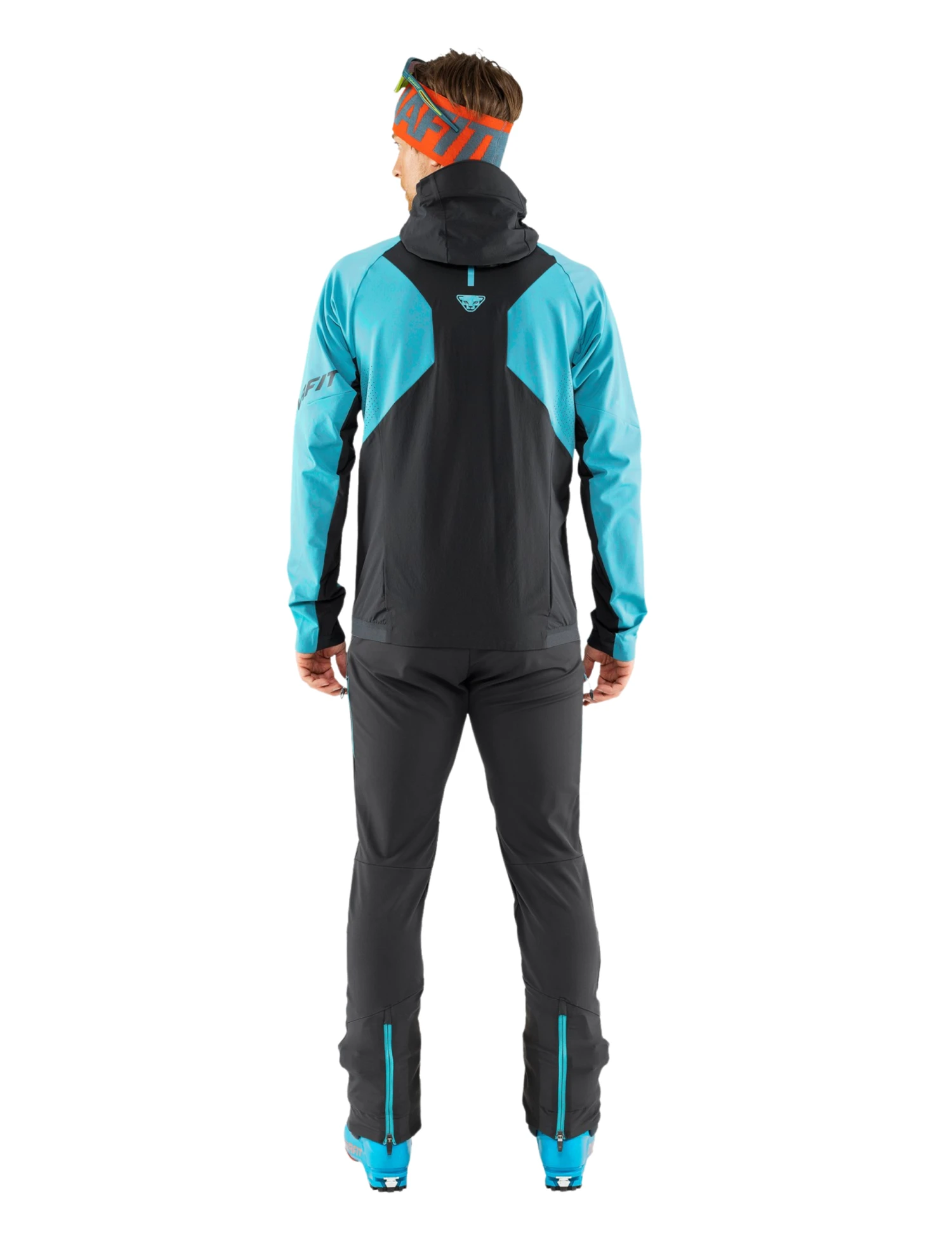 Les bas de jambes renforcés peuvent être élargis au moyen d’une fermeture éclair, pour une adaptation précise de ce pantalon softshell sur les chaussures de ski.