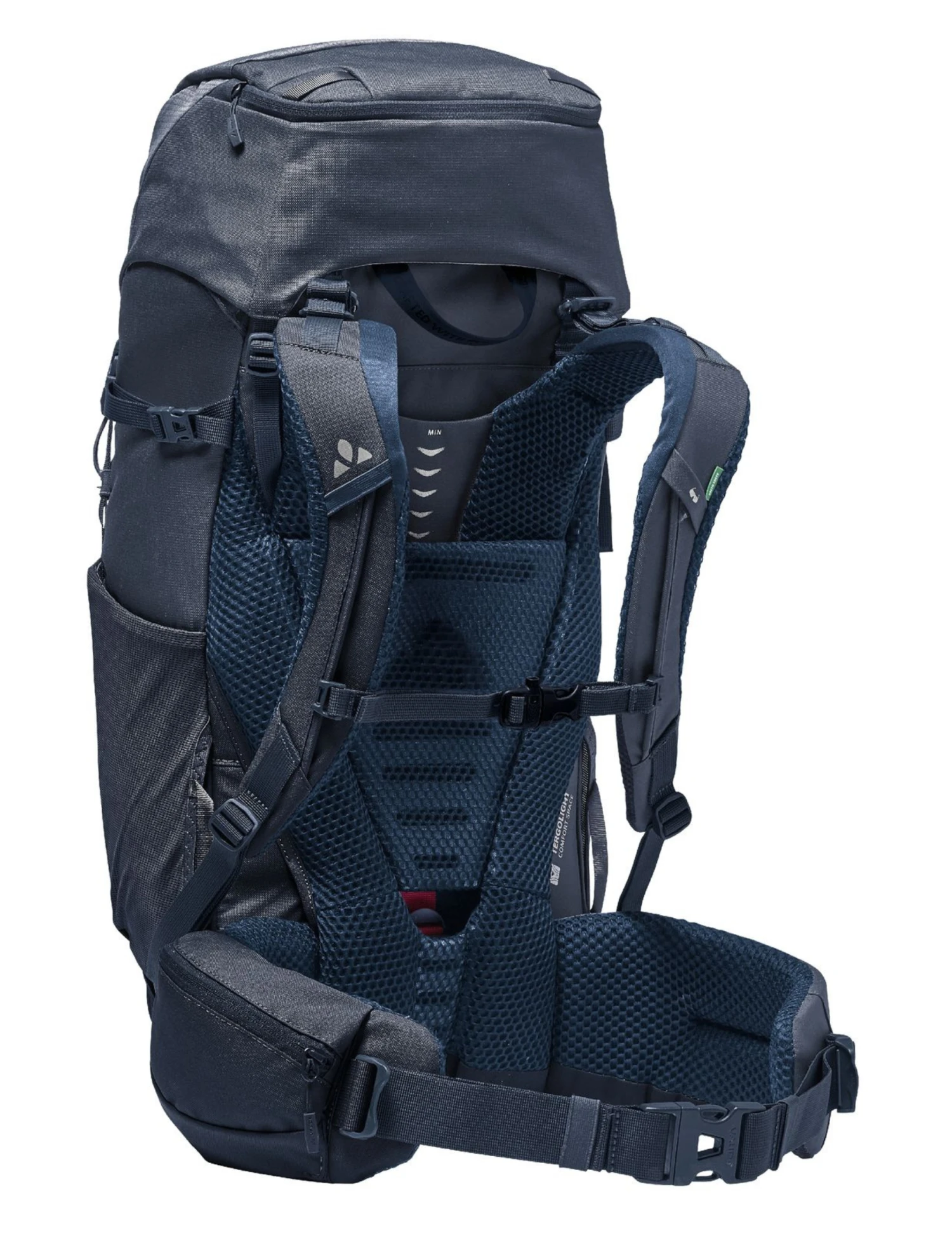 Ce système de portage est complété par des bretelles réglables laissant aux bras une belle liberté de mouvement et répartissant le poids de manière optimale, tout comme la ceinture ventrale rembourrée.