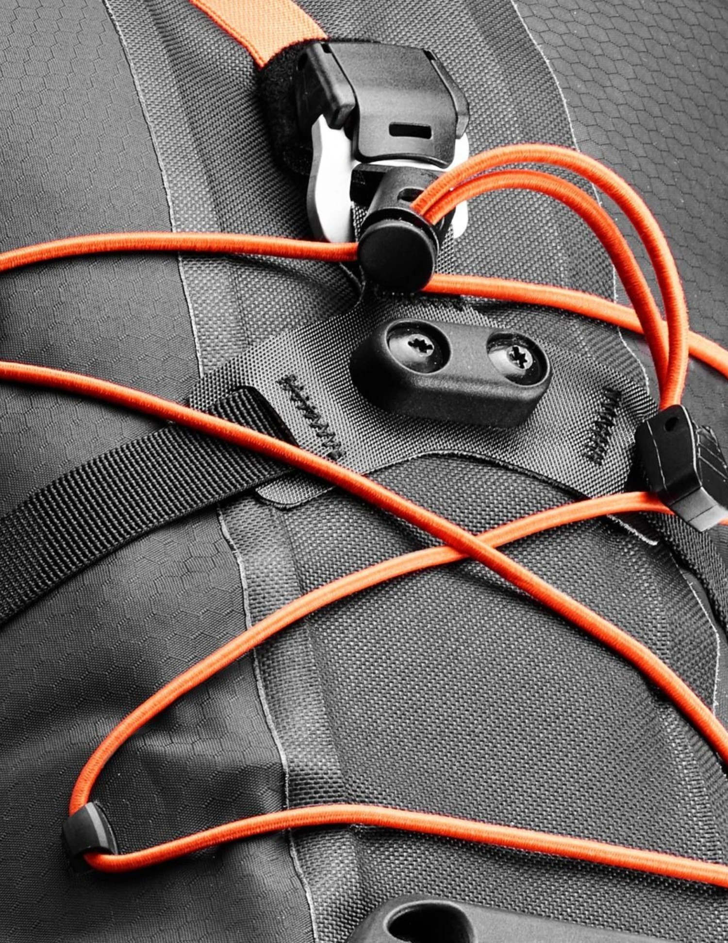 Conçue en toile de Nylon résistante à l’abrasion est d’une extrême stabilité, cette sacoche étanche à l’eau et à la poussière dispose d’un renfort intérieur et de cinq sangles de compression garantissant la sécurité du contenu qui reste bien empaqueté. Une soupape avec boucle de prise favorise la compression du volume empaqueté, et le cordon élastique côté extérieur permet la fixation d’un équipement supplémentaire. Afin d’éviter tout dommage en cas de contact avec les pneus, le dessous du Seat-Pack QR est muni d’une plaque de protection qui fait aussi office de garde-boue.